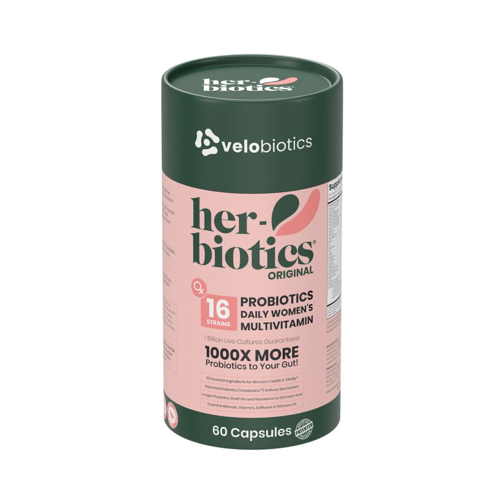 One way to restore and protect your gut health is to take a probiotic daily. Velobiotics offers a range of probiotic products developed with patented technology that helps safeguard probiotics from reduced storage viability and preserve them as they pass through the harsh, acidic stomach environment. Designed for women, Velobiotics Her-Biotics is a foundational daily supplement expertly formulated to optimise gut health, boost immunity, balance energy levels, and support overall well-being. By providing a powerful blend of essential vitamins, minerals, and their patented, highly effective probiotics, it works to optimise your body’s core functions.